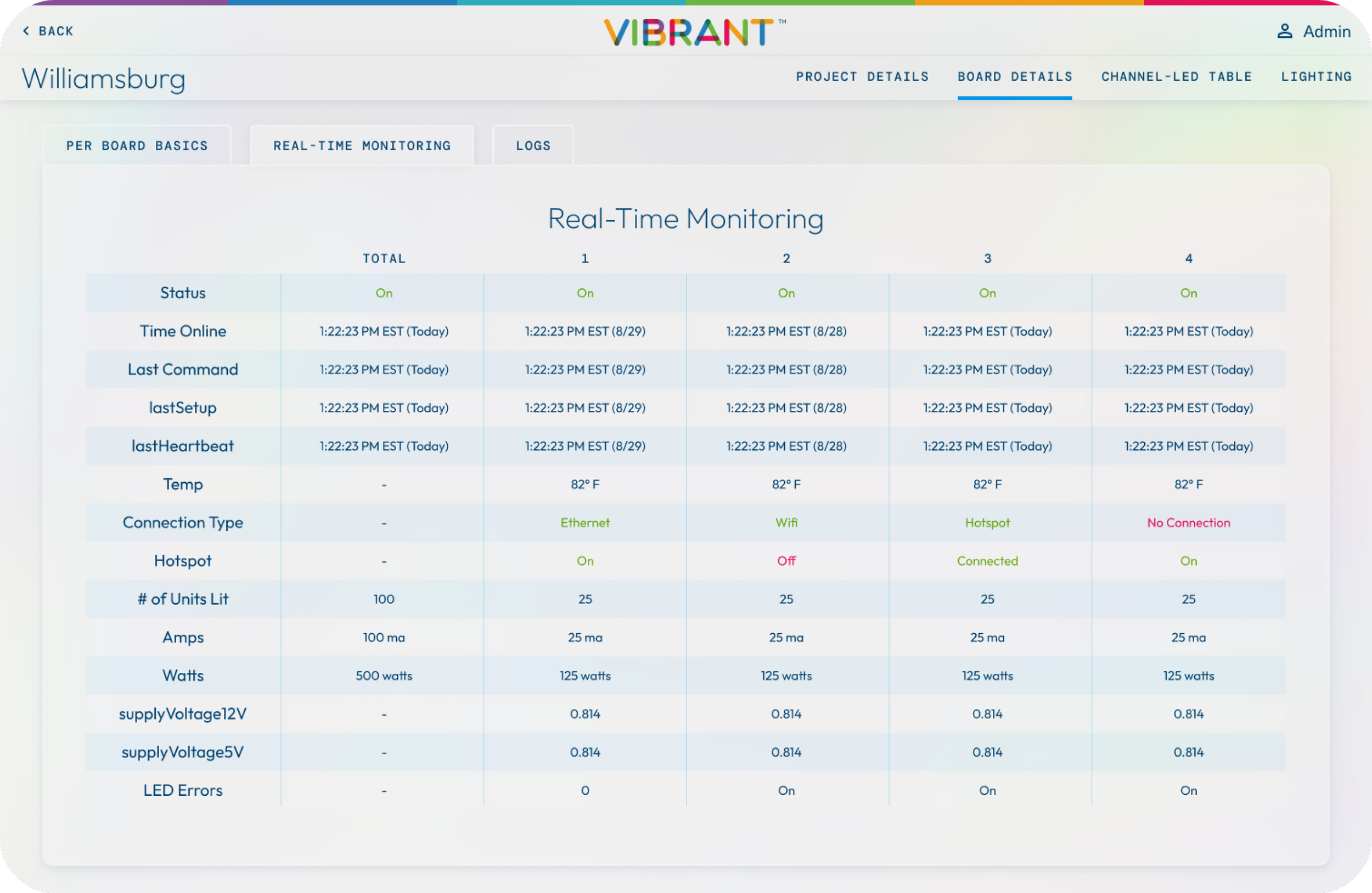 With Vibrant™, lighting can be controlled, monitored, tested, changed and analyzed from anywhere.